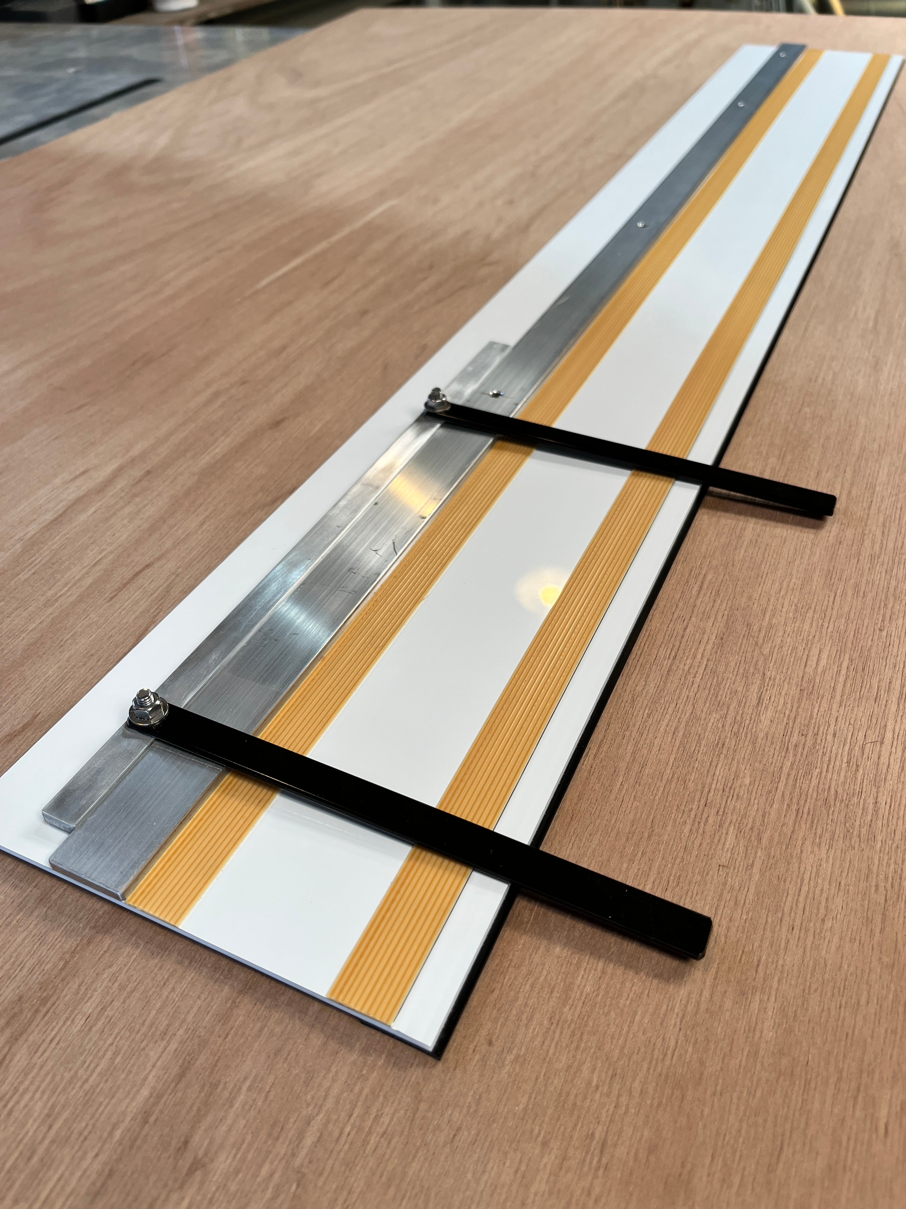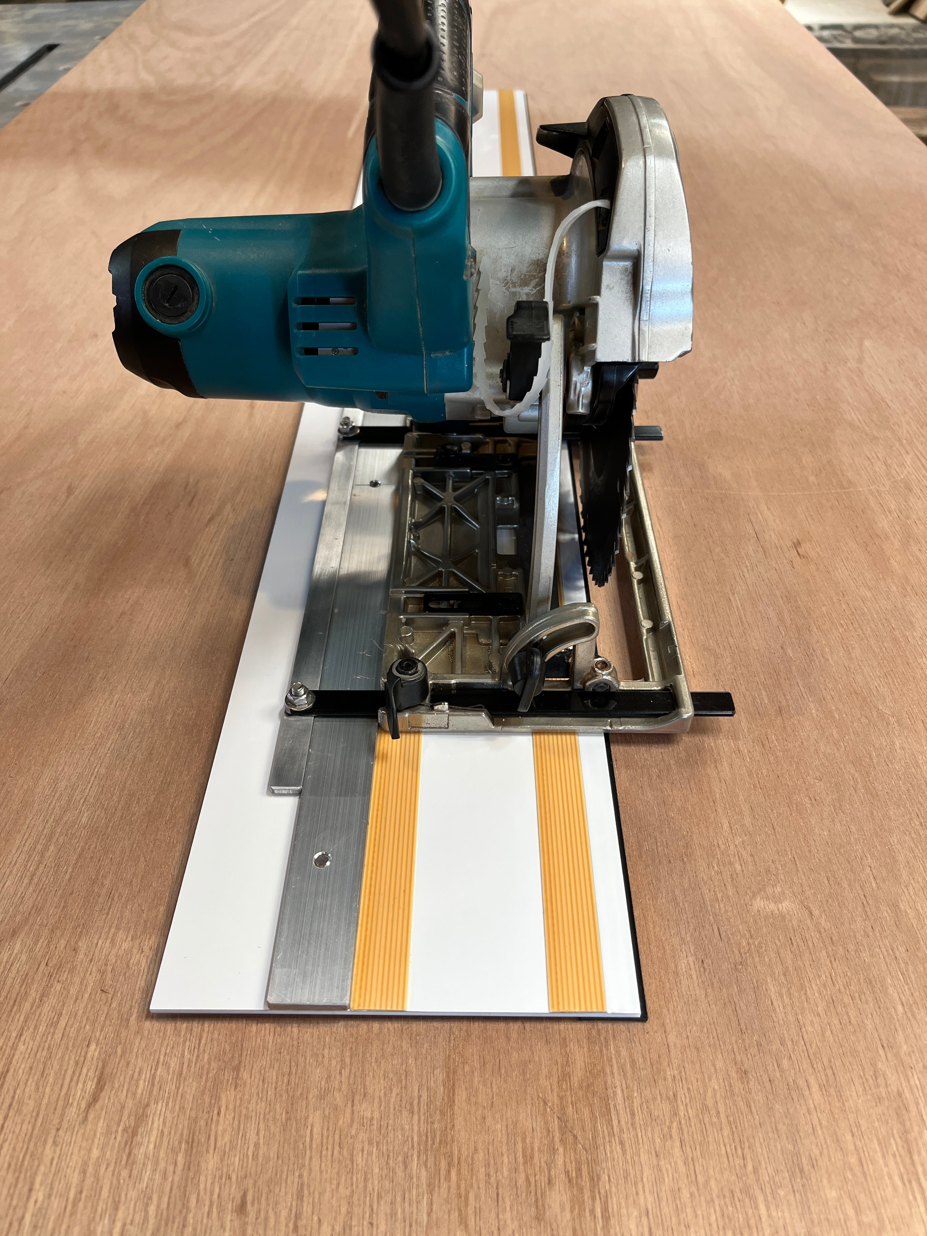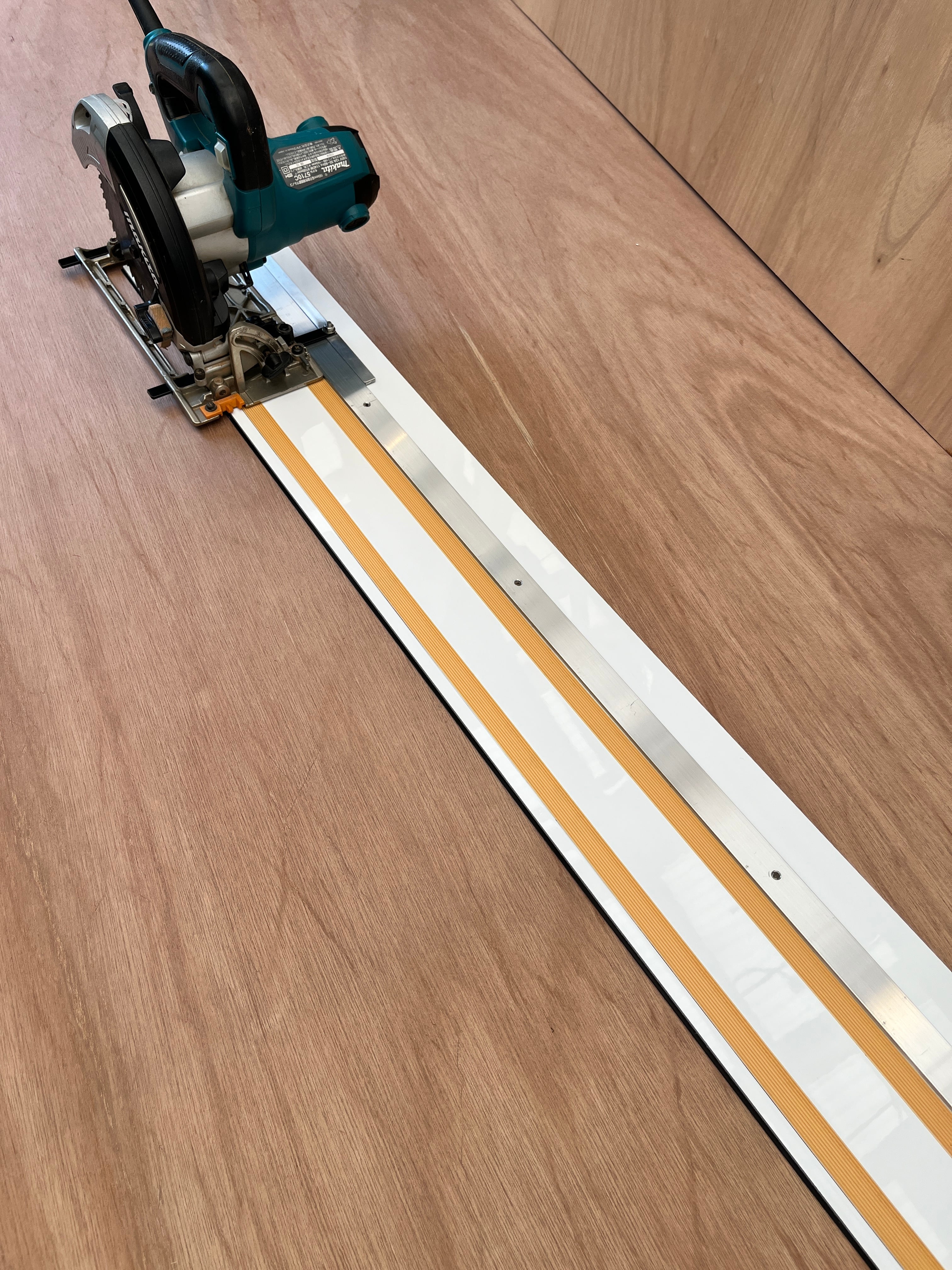 現在、市販されているトラックレールガイド(マキタプランジ丸ノコ40vmax、FESTOOL等)は当工場でも使用していますが、10万円以上ととても高額です。その分、切断精度、使用感ともにとても素晴らしいものです。(ちょっと重いけど…)