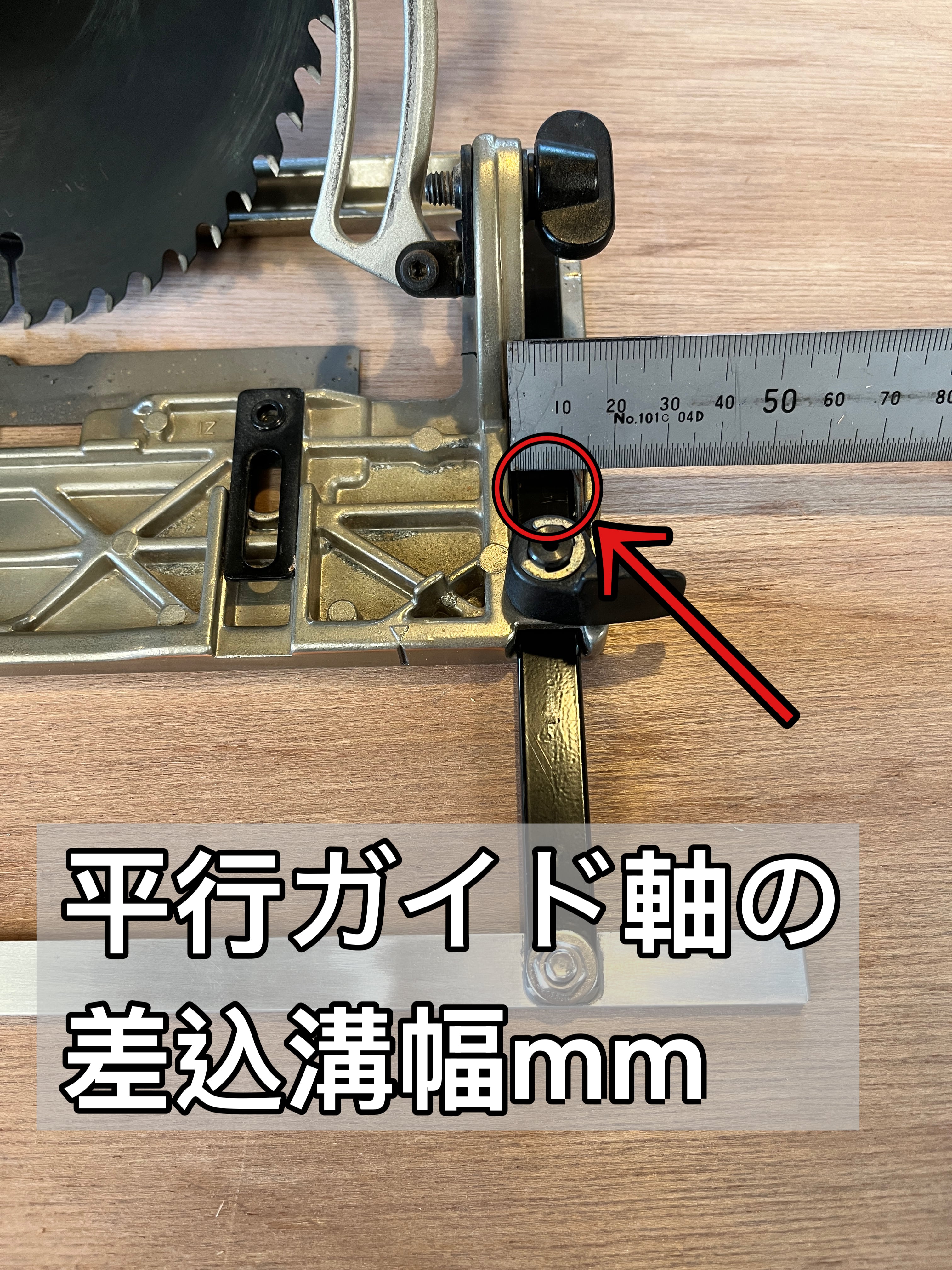 ご注文の際は、本治具にて使用される丸ノコの各部サイズを伺っております。下記部位のサイズをご確認の上お知らせいただきます。