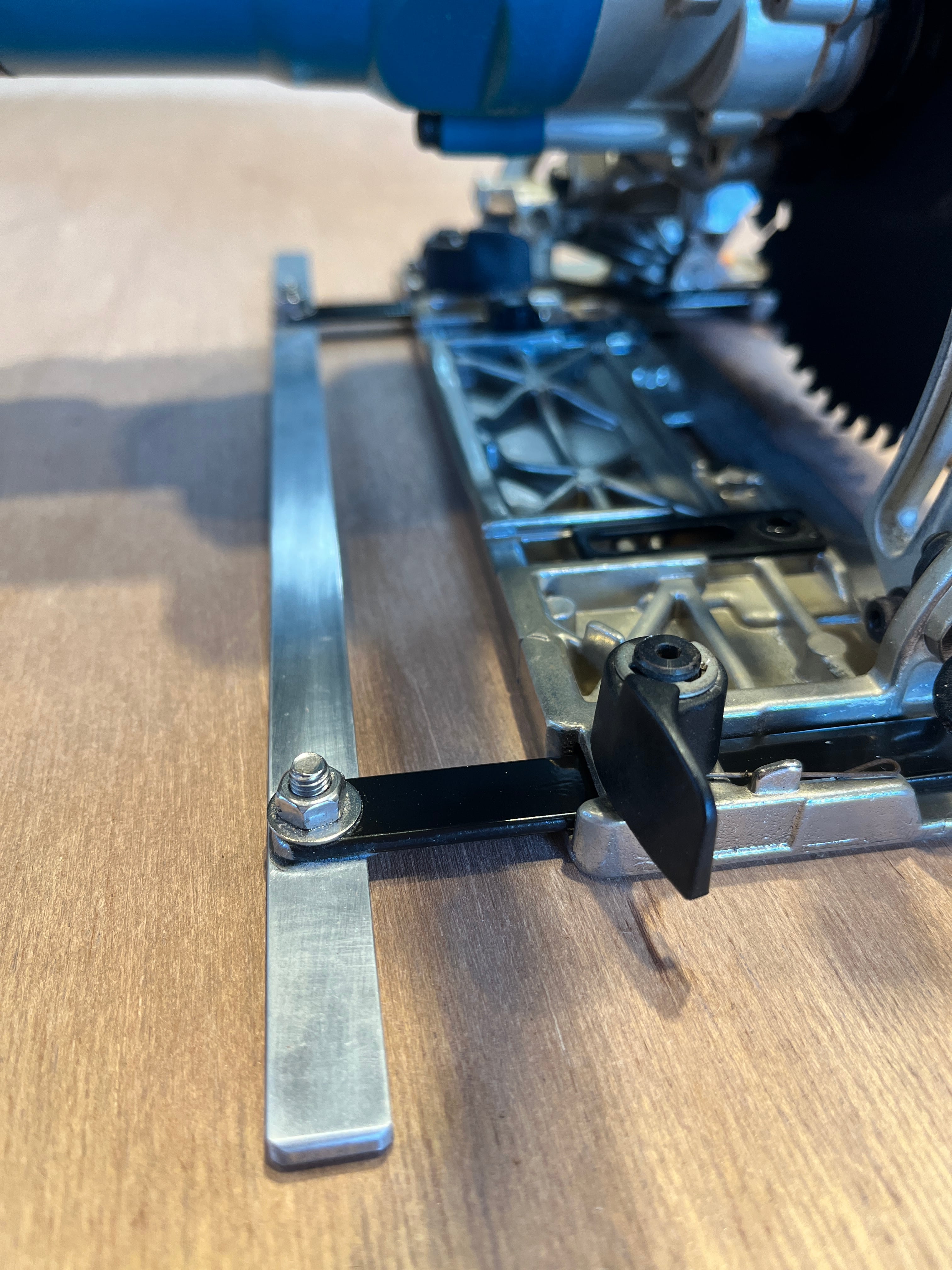 木工作業における基本工具である丸ノコ用ストレートカット治具です。